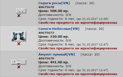 Вещи [VN] - аналоги существующих вещей экипировки, но с не идентифицированными свойствами.